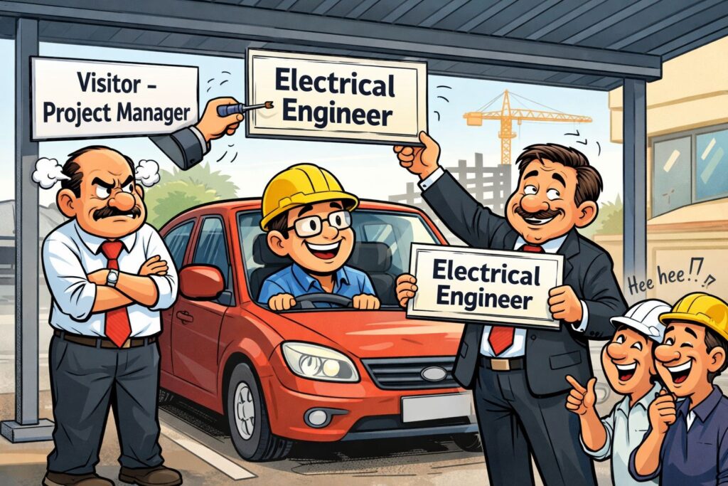 One Electrical Engineer, who had quietly served the project for years and had been parking inside the compound without incident, did not accept the change easily. He did not shout or protest in a formal meeting. Instead, he simply drove inside as usual and parked his vehicle in one of the two covered spaces marked “Visitor – Project Manager.”